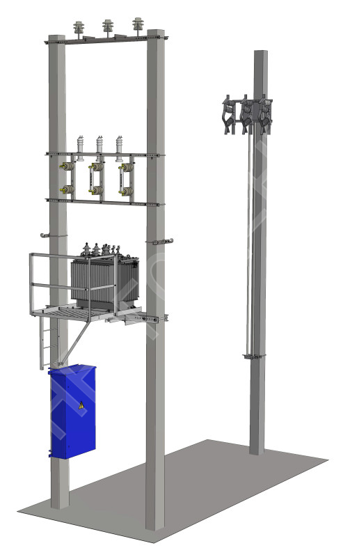 Мачтовая трансформаторная подстанция (МТП) – является оптимальным решением для электроснабжения потребителей III категории по надежности с мощностью до 250 кВА.